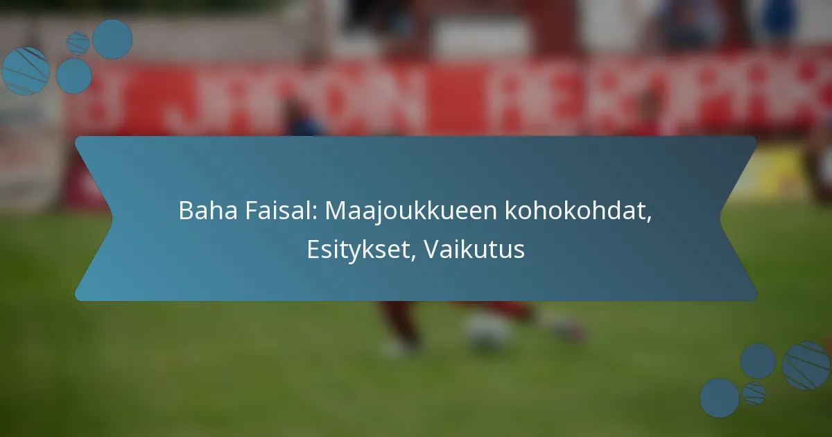 Baha Faisal on äskettäin saavuttanut useita uran merkkipaaluja, mukaan lukien ensimmäisen kansainvälisen maalinsa ja huomattavan määrän esiintymisiä maajoukkueessa. Nämä saavutukset korostavat hänen nopeaa kehitystään ja kasvavaa merkityksensä joukkueessa.